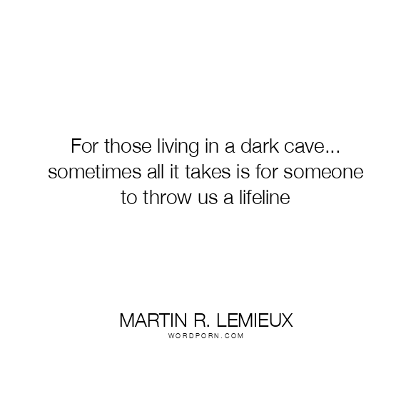 Martin R. Lemieux quote. For those living in a dark cave... sometimes all it takes is for someone to throw us a lifeline