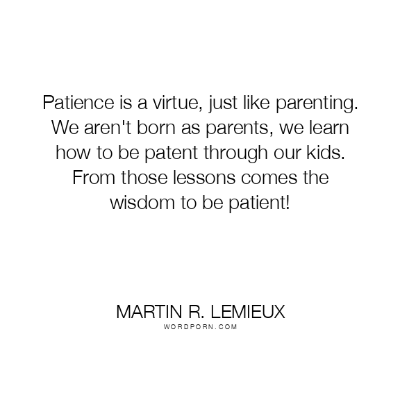 Martin R. Lemieux quote. Patience is a virtue, just like parenting. We aren't born as parents, we learn how to be patent through our kids. From those lessons comes the wisdom to be patient!