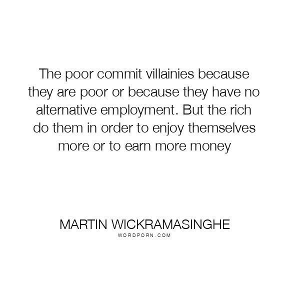 The poor commit villainies because they are poor or because they have no alternative employment. But the rich do them in order to enjoy themselves more or to earn more money