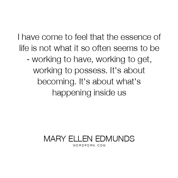I have come to feel that the essence of life is not what it so often seems to be - working to have, working to get, working to possess. It's about becoming. It's about what's happening inside us