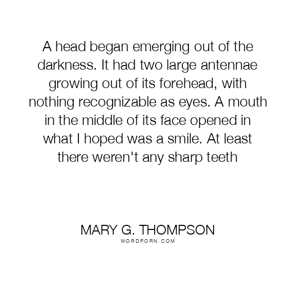 A head began emerging out of the darkness. It had two large antennae growing out of its forehead, with nothing recognizable as eyes. A mouth in the middle of its face opened in what I hoped was a smile. At least there weren't any sharp teeth