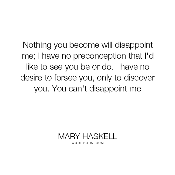 Nothing you become will disappoint me; I have no preconception that I'd like to see you be or do. I have no desire to forsee you, only to discover you. You can't disappoint me
