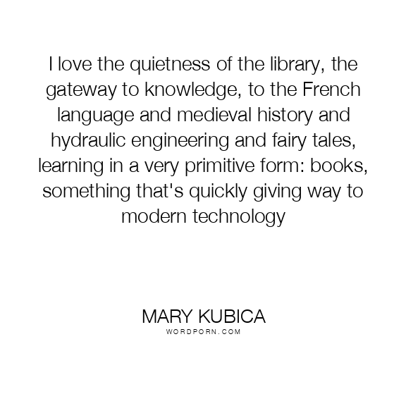I love the quietness of the library, the gateway to knowledge, to the French language and medieval history and hydraulic engineering and fairy tales, learning in a very primitive form: books, something that's quickly giving way to modern technology
