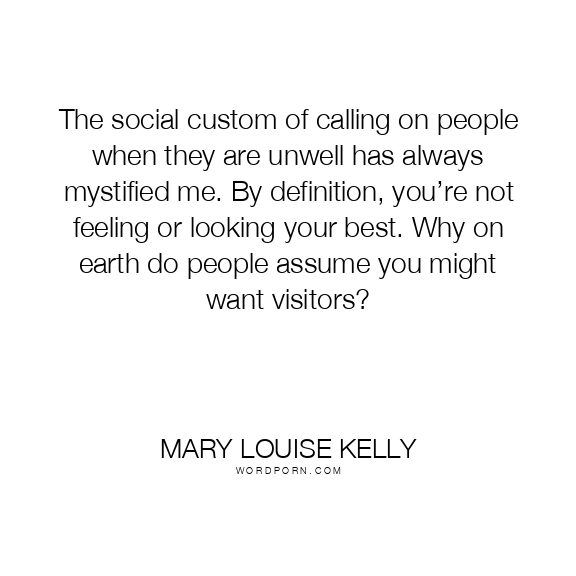 The social custom of calling on people when they are unwell has always mystified me. By definition, you’re not feeling or looking your best. Why on earth do people assume you might want visitors?