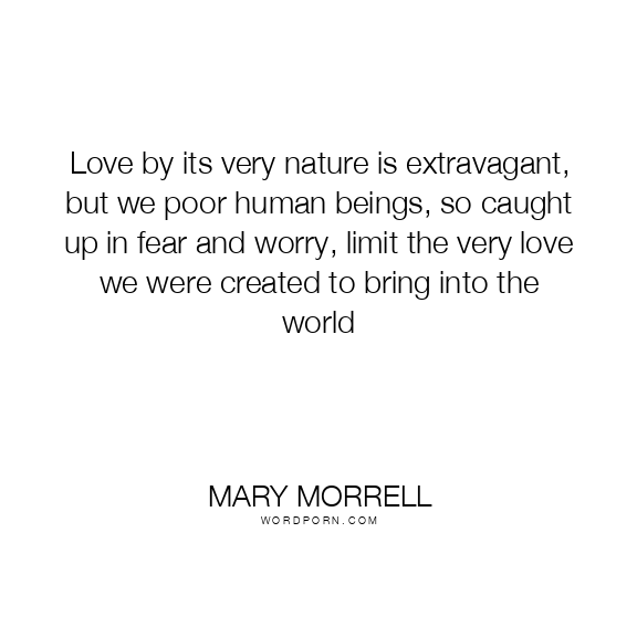 Love by its very nature is extravagant, but we poor human beings, so caught up in fear and worry, limit the very love we were created to bring into the world
