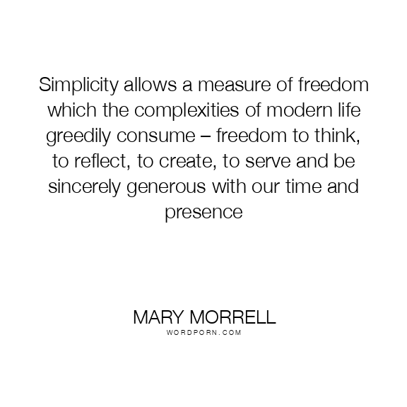 Simplicity allows a measure of freedom which the complexities of modern life greedily consume – freedom to think, to reflect, to create, to serve and be sincerely generous with our time and presence