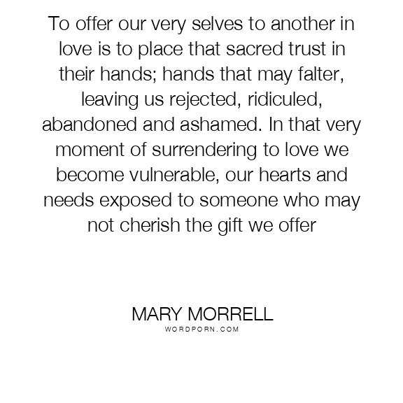 To offer our very selves to another in love is to place that sacred trust in their hands; hands that may falter, leaving us rejected, ridiculed, abandoned and ashamed. In that very moment of surrendering to love we become vulnerable, our hearts and needs exposed to someone who may not cherish the gift we offer