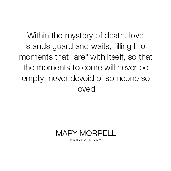 Within the mystery of death, love stands guard and waits, filling the moments that "are" with itself, so that the moments to come will never be empty, never devoid of someone so loved