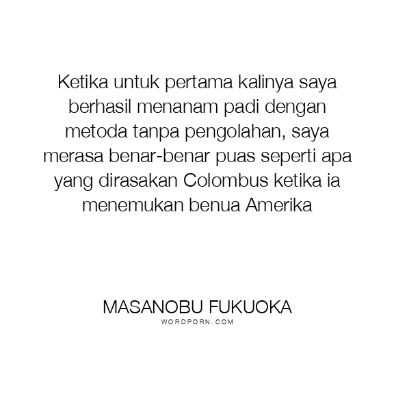 Ketika untuk pertama kalinya saya berhasil menanam padi dengan metoda tanpa pengolahan, saya merasa benar-benar puas seperti apa yang dirasakan Colombus ketika ia menemukan benua Amerika