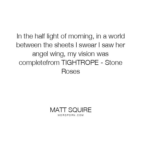 In the half light of morning, in a world between the sheets I swear I saw her angel wing, my vision was completefrom TIGHTROPE - Stone Roses
