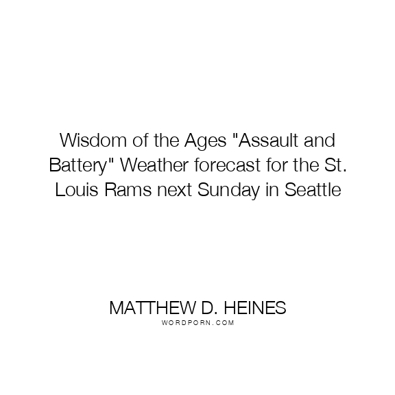 Wisdom of the Ages "Assault and Battery" Weather forecast for the St. Louis Rams next Sunday in Seattle