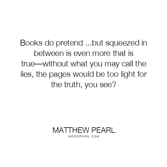 Books do pretend ...but squeezed in between is even more that is true—without what you may call the lies, the pages would be too light for the truth, you see?