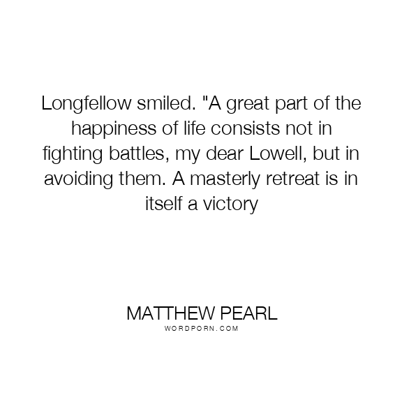 Longfellow smiled. "A great part of the happiness of life consists not in fighting battles, my dear Lowell, but in avoiding them. A masterly retreat is in itself a victory