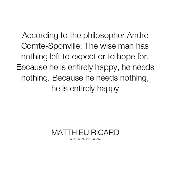 According to the philosopher Andre Comte-Sponville: The wise man has nothing left to expect or to hope for. Because he is entirely happy, he needs nothing. Because he needs nothing, he is entirely happy