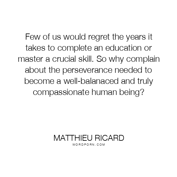 Few of us would regret the years it takes to complete an education or master a crucial skill. So why complain about the perseverance needed to become a well-balanaced and truly compassionate human being?