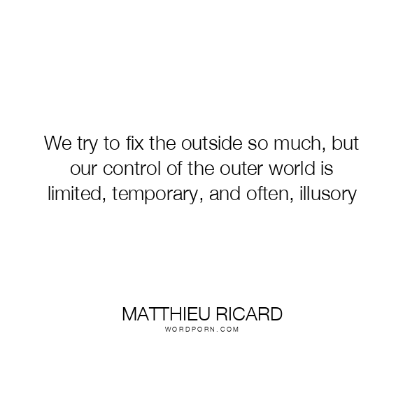 We try to fix the outside so much, but our control of the outer world is limited, temporary, and often, illusory