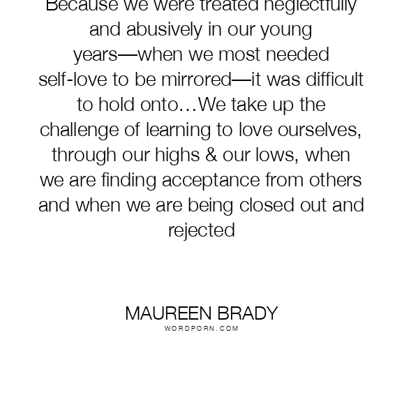 Because we were treated neglectfully and abusively in our young years—when we most needed self-love to be mirrored—it was difficult to hold onto…We take up the challenge of learning to love ourselves, through our highs & our lows, when we are finding acceptance from others and when we are being closed out and rejected