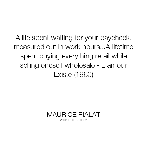 A life spent waiting for your paycheck, measured out in work hours...A lifetime spent buying everything retail while selling oneself wholesale - L'amour Existe (1960)