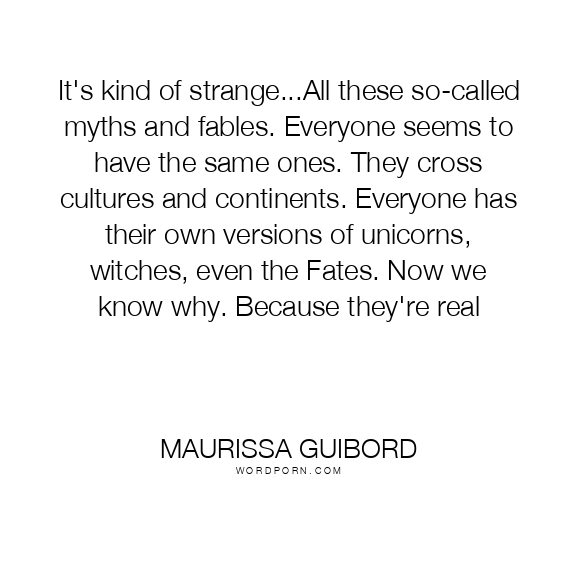 It's kind of strange...All these so-called myths and fables. Everyone seems to have the same ones. They cross cultures and continents. Everyone has their own versions of unicorns, witches, even the Fates. Now we know why. Because they're real