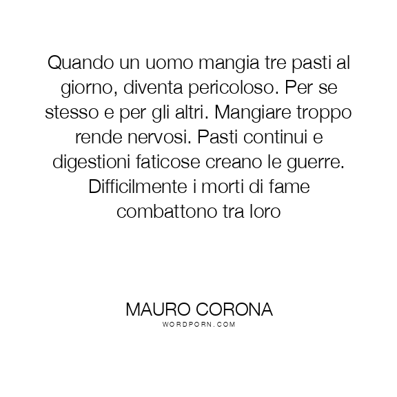 Quando un uomo mangia tre pasti al giorno, diventa pericoloso. Per se stesso e per gli altri. Mangiare troppo rende nervosi. Pasti continui e digestioni faticose creano le guerre. Difficilmente i morti di fame combattono tra loro