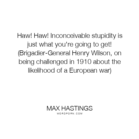 Haw! Haw! Inconceivable stupidity is just what you're going to get! (Brigadier-General Henry Wilson, on being challenged in 1910 about the likelihood of a European war)