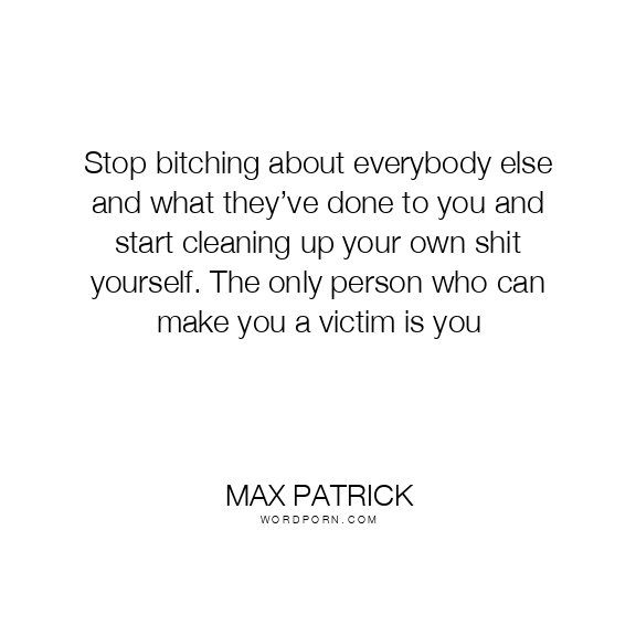 Stop bitching about everybody else and what they’ve done to you and start cleaning up your own shit yourself. The only person who can make you a victim is you
