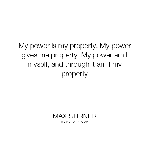 My power is my property. My power gives me property. My power am I myself, and through it am I my property