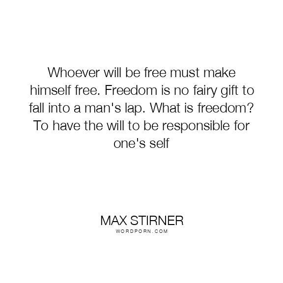 Whoever will be free must make himself free. Freedom is no fairy gift to fall into a man's lap. What is freedom? To have the will to be responsible for one's self