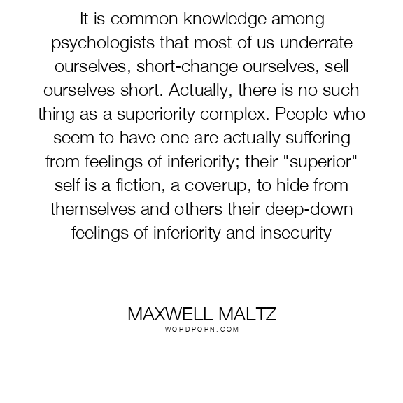 It is common knowledge among psychologists that most of us underrate ourselves, short-change ourselves, sell ourselves short. Actually, there is no such thing as a superiority complex. People who seem to have one are actually suffering from feelings of inferiority; their "superior" self is a fiction, a coverup, to hide from themselves and others their deep-down feelings of inferiority and insecurity