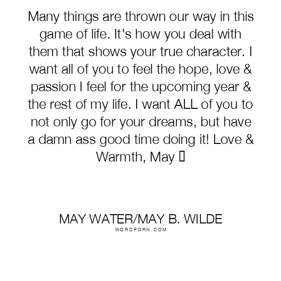 Many things are thrown our way in this game of life. It's how you deal with them that shows your true character. I want all of you to feel the hope, love & passion I feel for the upcoming year & the rest of my life. I want ALL of you to not only go for your dreams, but have a damn ass good time doing it! Love & Warmth, May ♥