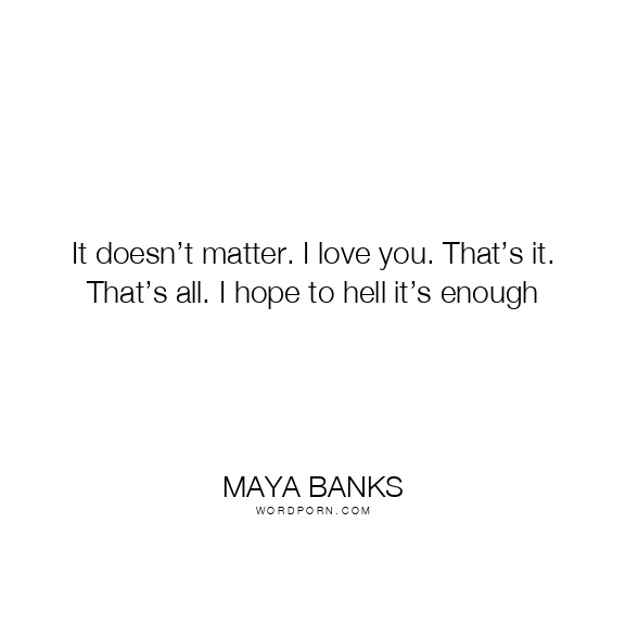 It doesn’t matter. I love you. That’s it. That’s all. I hope to hell it’s enough