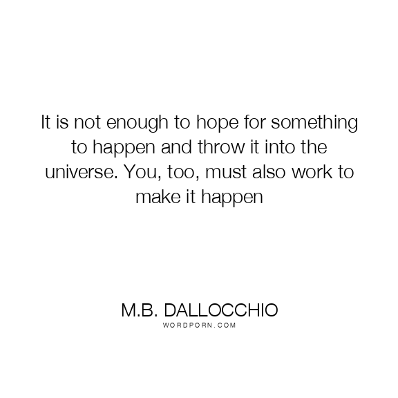 It is not enough to hope for something to happen and throw it into the universe. You, too, must also work to make it happen