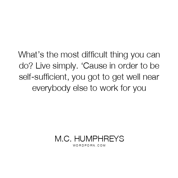 Copy Image What’s the most difficult thing you can do? Live simply. ‘Cause in order to be self-sufficient, you got to get well near everybody else to work for you Moms Typewriter A A SAVE THIS IMAGE