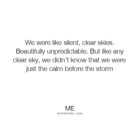 Copy Image We were like silent, clear skies. Beautifully unpredictable. But like any clear sky, we didn't know that we were just the calm before the storm Moms Typewriter A A SAVE THIS IMAGE