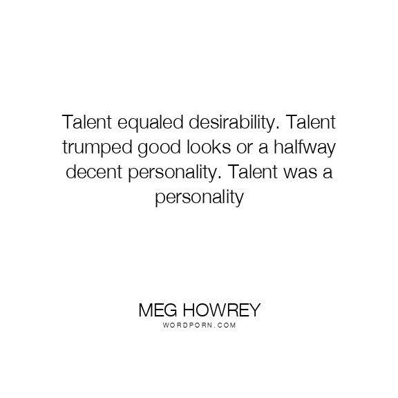 Talent equaled desirability. Talent trumped good looks or a halfway decent personality. Talent was a personality