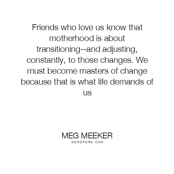 Friends who love us know that motherhood is about transitioning--and adjusting, constantly, to those changes. We must become masters of change because that is what life demands of us