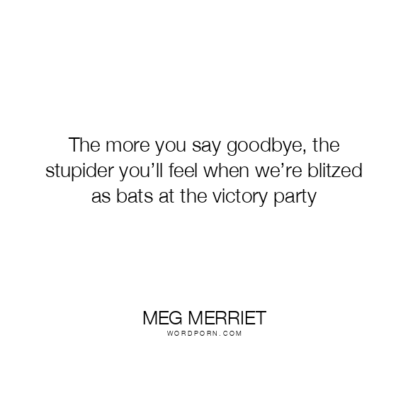Copy Image The more you say goodbye, the stupider you’ll feel when we’re blitzed as bats at the victory party Moms Typewriter A A SAVE THIS IMAGE