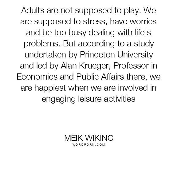 Adults are not supposed to play. We are supposed to stress, have worries and be too busy dealing with life's problems. But according to a study undertaken by Princeton University and led by Alan Krueger, Professor in Economics and Public Affairs there, we are happiest when we are involved in engaging leisure activities