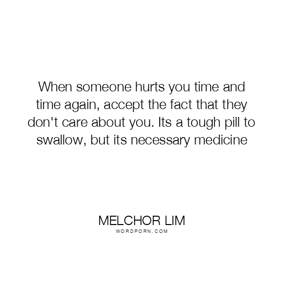 Copy Image When someone hurts you time and time again, accept the fact that they don't care about you. Its a tough pill to swallow, but its necessary medicine Moms Typewriter A A SAVE THIS IMAGE