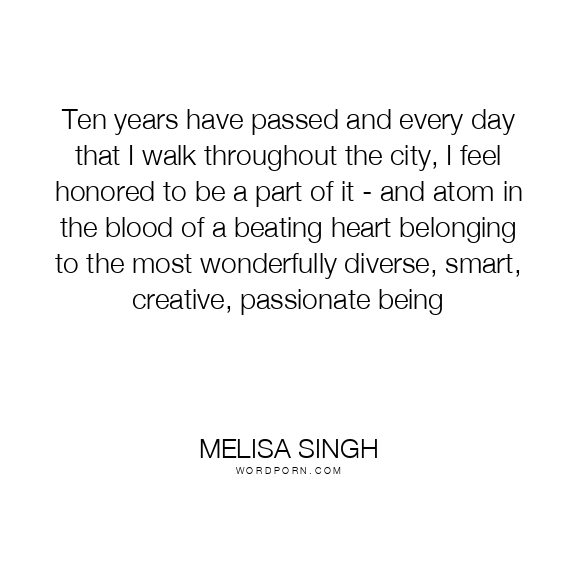 Ten years have passed and every day that I walk throughout the city, I feel honored to be a part of it - and atom in the blood of a beating heart belonging to the most wonderfully diverse, smart, creative, passionate being