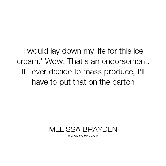 Copy Image I would lay down my life for this ice cream.''Wow. That's an endorsement. If I ever decide to mass produce, I'll have to put that on the carton Moms Typewriter A A SAVE THIS IMAGE