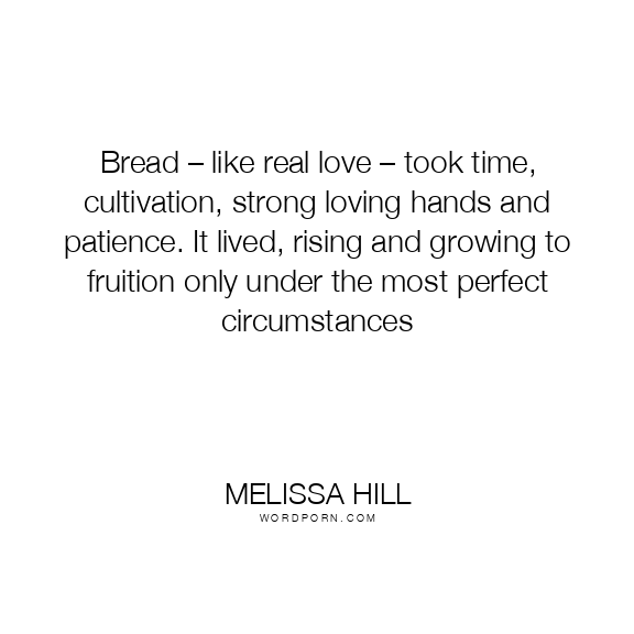 Bread – like real love – took time, cultivation, strong loving hands and patience. It lived, rising and growing to fruition only under the most perfect circumstances