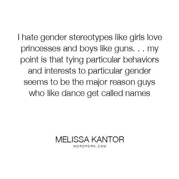 I hate gender stereotypes like girls love princesses and boys like guns. . . my point is that tying particular behaviors and interests to particular gender seems to be the major reason guys who like dance get called names