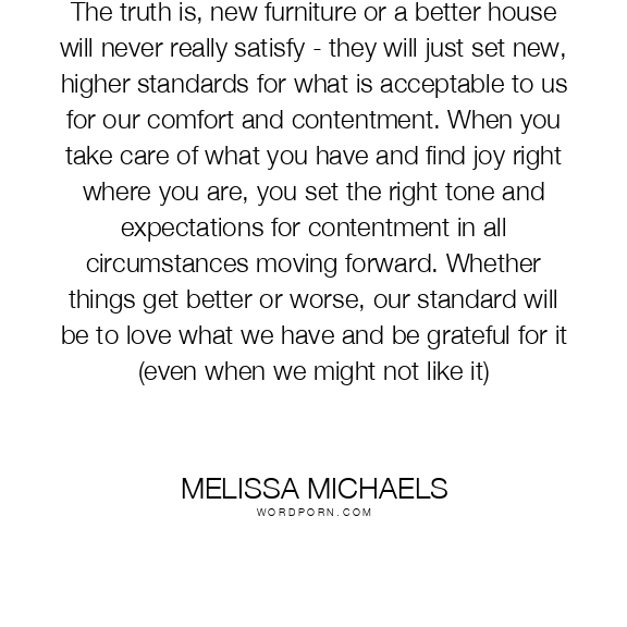 The truth is, new furniture or a better house will never really satisfy - they will just set new, higher standards for what is acceptable to us for our comfort and contentment. When you take care of what you have and find joy right where you are, you set the right tone and expectations for contentment in all circumstances moving forward. Whether things get better or worse, our standard will be to love what we have and be grateful for it (even when we might not like it)