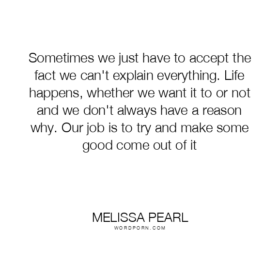 Sometimes we just have to accept the fact we can't explain everything. Life happens, whether we want it to or not and we don't always have a reason why. Our job is to try and make some good come out of it
