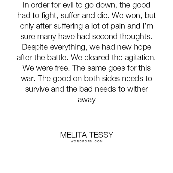 In order for evil to go down, the good had to fight, suffer and die. We won, but only after suffering a lot of pain and I’m sure many have had second thoughts. Despite everything, we had new hope after the battle. We cleared the agitation. We were free. The same goes for this war. The good on both sides needs to survive and the bad needs to wither away