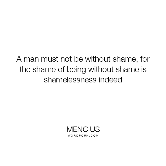 A man must not be without shame, for the shame of being without shame is shamelessness indeed