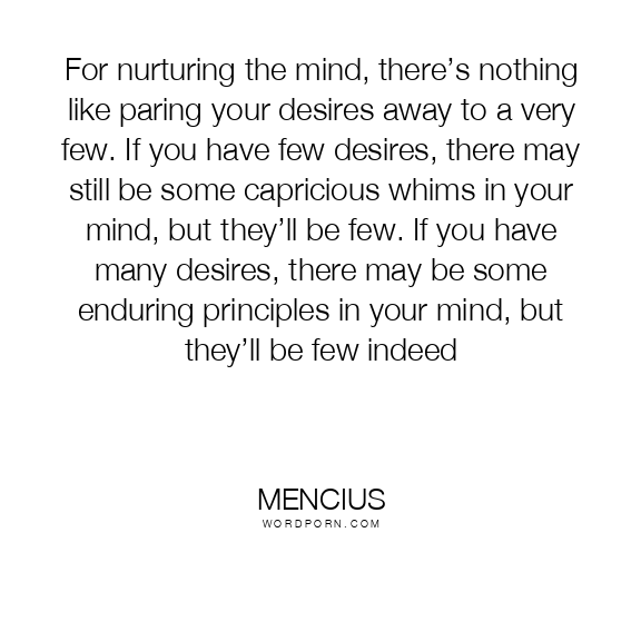 For nurturing the mind, there’s nothing like paring your desires away to a very few. If you have few desires, there may still be some capricious whims in your mind, but they’ll be few. If you have many desires, there may be some enduring principles in your mind, but they’ll be few indeed