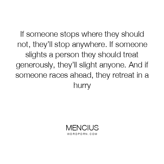 If someone stops where they should not, they’ll stop anywhere. If someone slights a person they should treat generously, they’ll slight anyone. And if someone races ahead, they retreat in a hurry