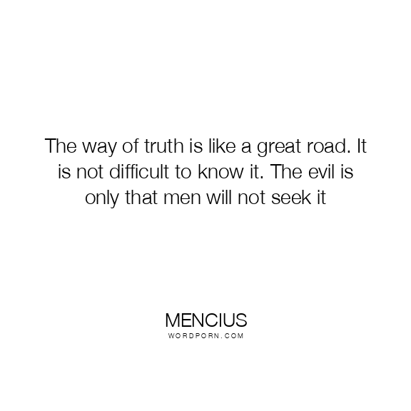 The way of truth is like a great road. It is not difficult to know it. The evil is only that men will not seek it